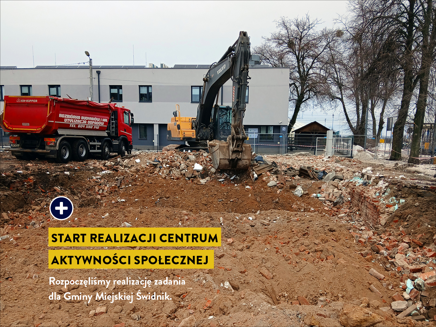 Rozpoczęliśmy realizację zadania dla Gminy Miejskiej Świdnik – budowę Centrum Aktywności Społecznej, które będzie miejscem wsparcia oraz aktywizacji osób i grup mieszkańców wykluczonych lub zagrożonych wykluczeniem społecznym.