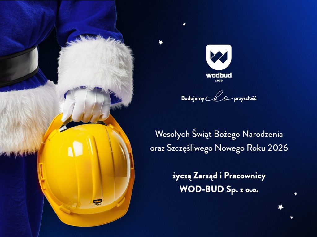 Z okazji Świąt Bożego Narodzenia życzymy Państwu spokojnych, dobrych chwil oraz czasu na odpoczynekw gronie najbliższych. Niech Rok 2026 przyniesie zdrowie, stabilnośći satysfakcję z realizowanych planów —zarówno zawodowych, jak i osobistych. Wesołych Świąt Bożego Narodzeniaoraz Szczęśliwego Nowego Roku Zarząd i Pracownicy WOD-BUD